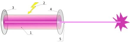 In a laser medium(1), when (2)energy(e.g. as light) is applied enclosed within mirrors (3&4) , a situation comes when photons start moving in step in one direction, get amplified & becomes concentrated beam of light(5) & where it hits , it displays intense light. Similarly , when energy of attention is applied within body, a time comes when it withdraws within , becomes a beam of energy within spine (in jhana(dhyan)/samdhi state) & when it hits the brain it produces illumination leading to Panna state(sans. pragya):