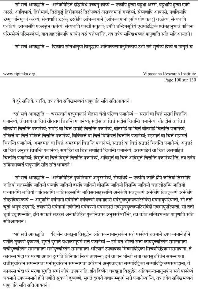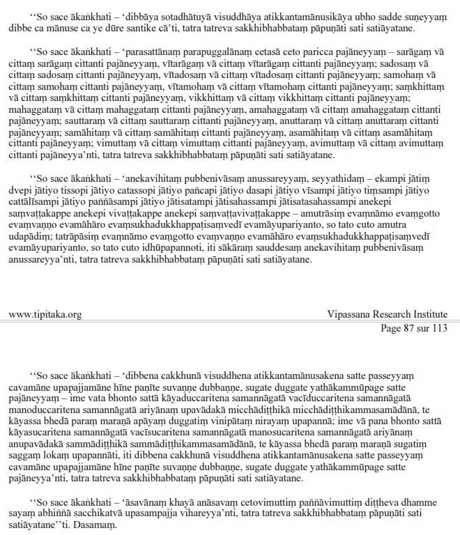 “If he wishes: ’With the divine ear element, which is purified and surpasses the human, may I hear both kinds of sounds, the divine and human, those that are far as well as near’—he achieves the capacity of realising that state by direct knowledge, whenever the necessary conditions obtain.