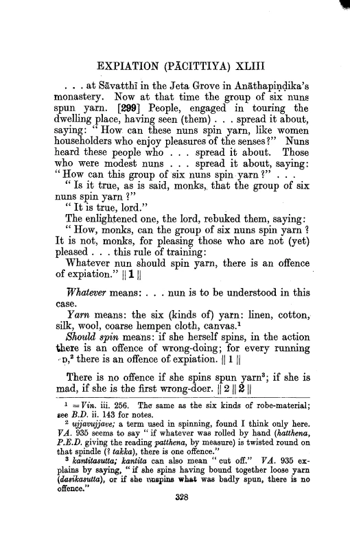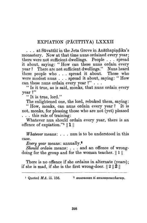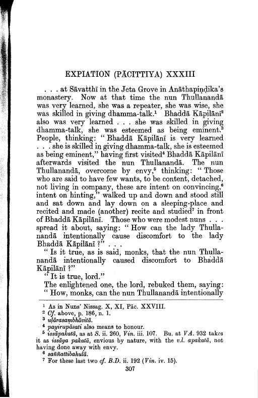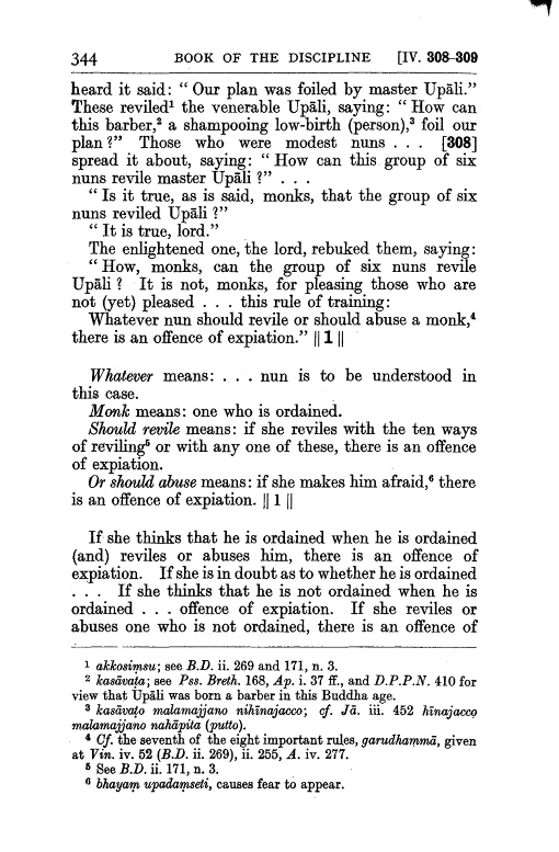 150. When the rules of the higher order are recited, if a bhikkhuni says: `What is the use of reciting these kindred precepts, they arouse doubt, worry and consternation.' Decrying the precepts is an offence for atonement.