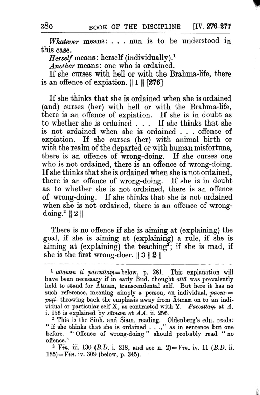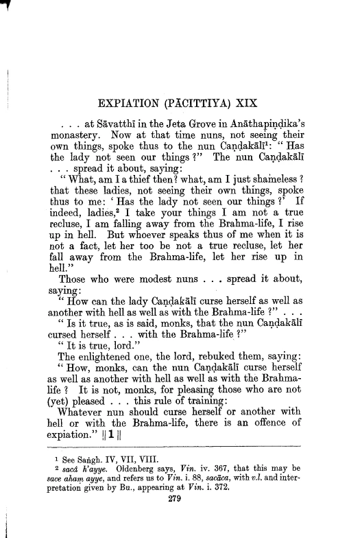 19. If a bhikkhuni curse her self or another about the holy life or about hell, it's an offence for atonement