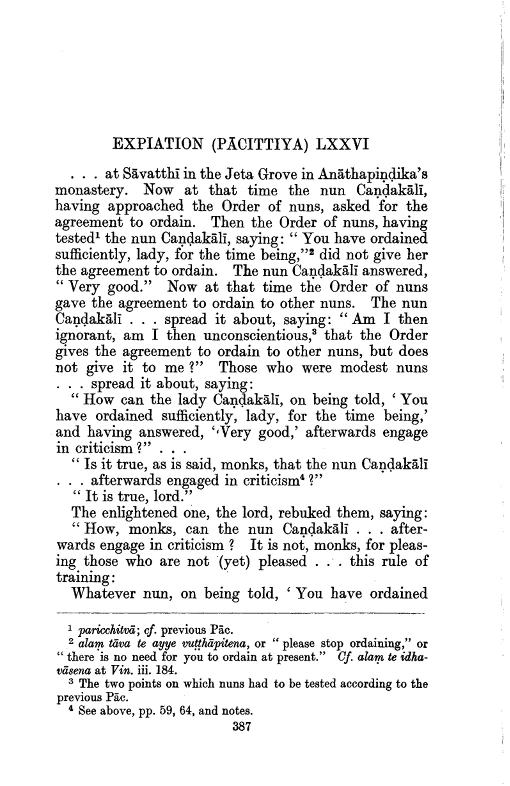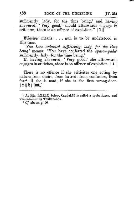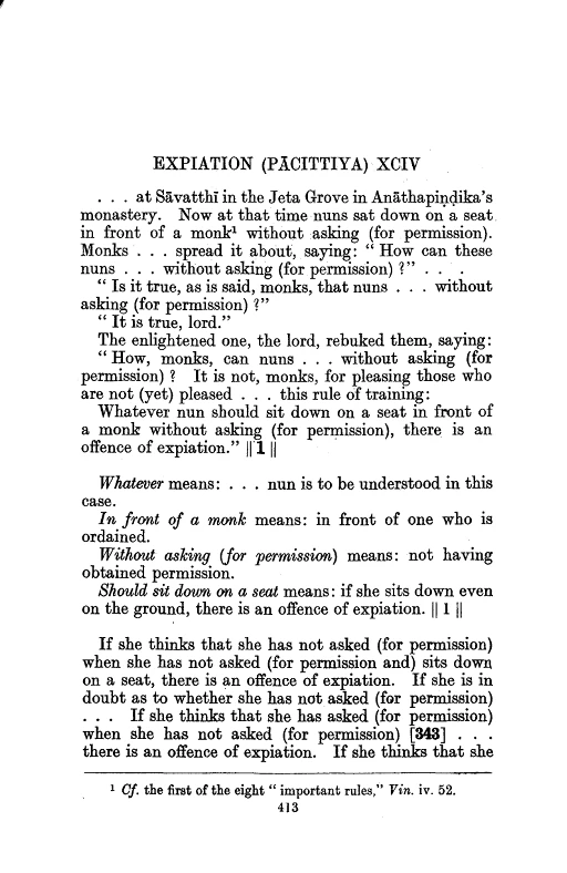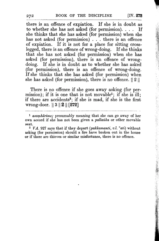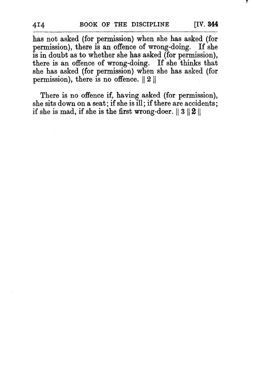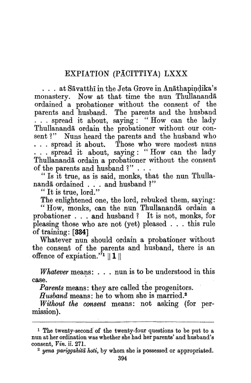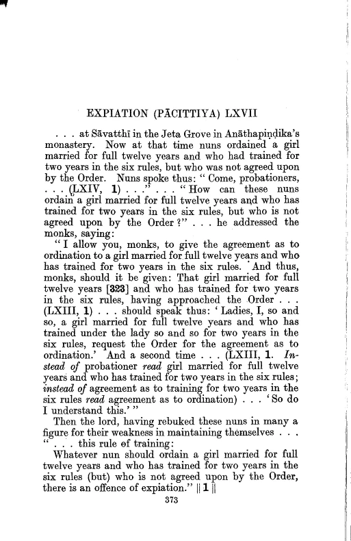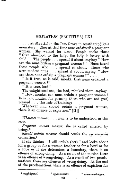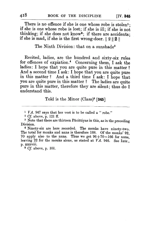 Noble ladies, the one hundred and sixty six offences that merit atonement, are recited, now I ask how is your purity? For the second and for the third time I ask how is your purity? The noble ladies are pure, therefore they are silent, and I record it as such.