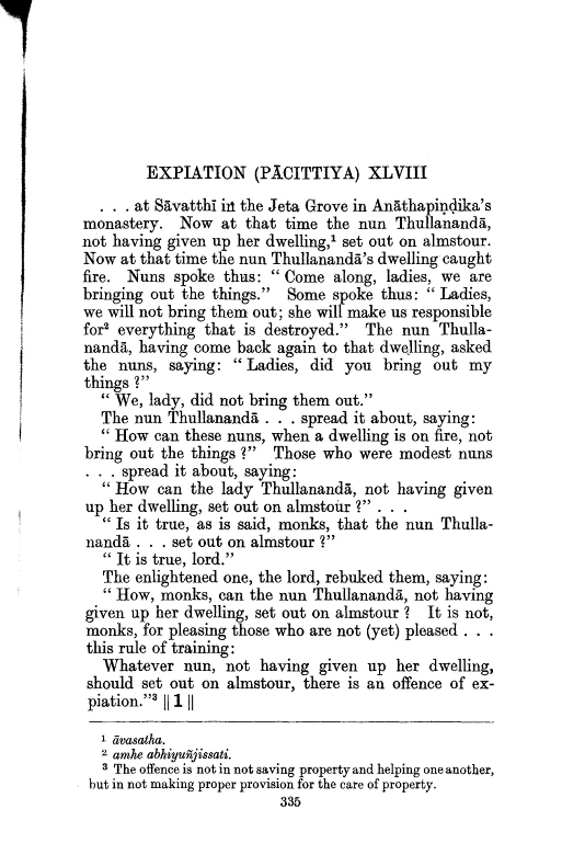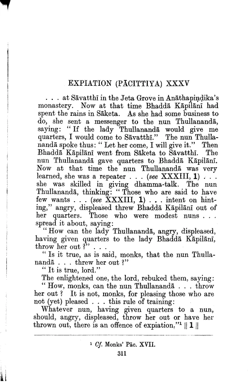35.Should a bhikkhuni giving lodgings to a bhikkhuni, when angry and displeased turn her out, it's an offence for atonement.