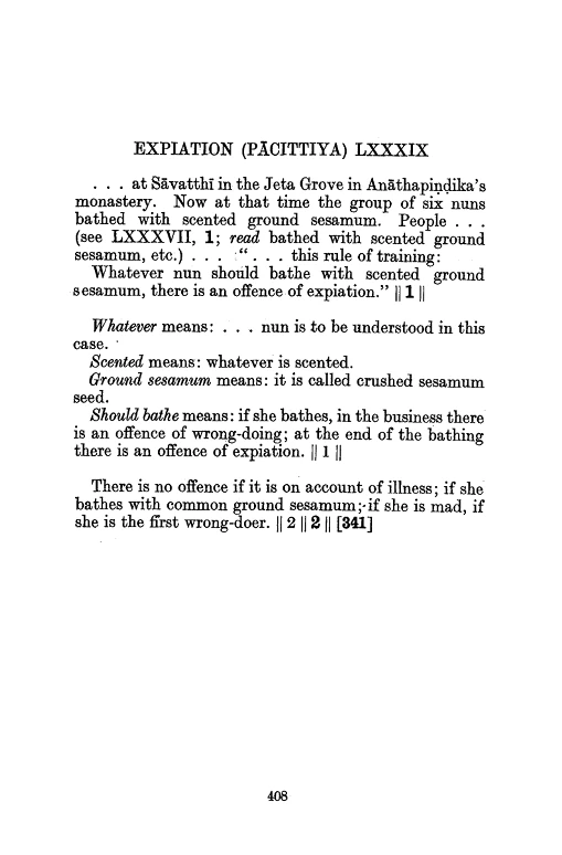 138.If a bhikkhuni bathe twice within the interval of two weeks without a suitable reason, it's an offence for atonement.