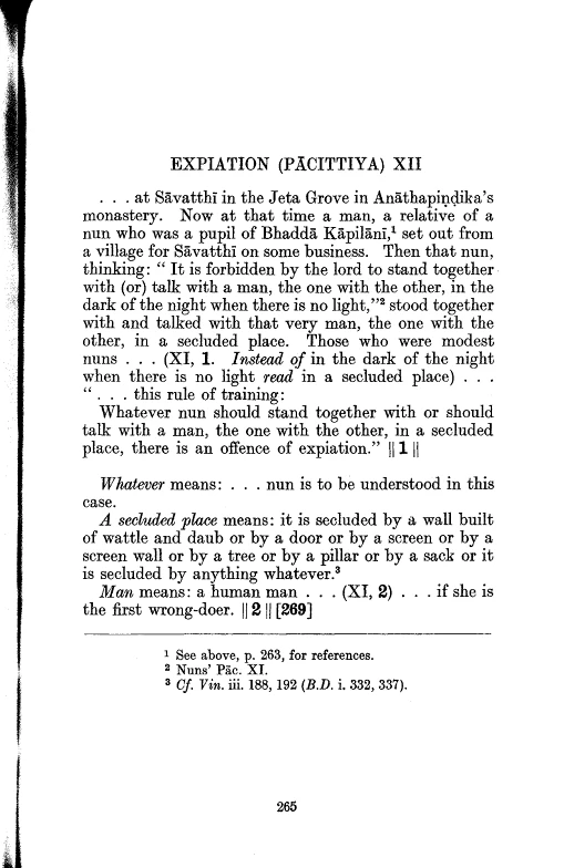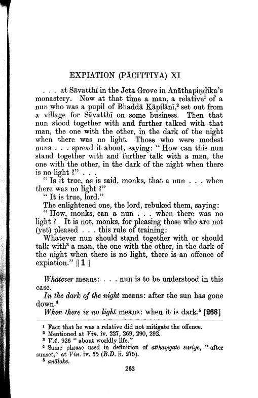 11. If a bhikkhuni without another, stand close to a male and talk to him in the dark, without a light, it's an offence for atonement.