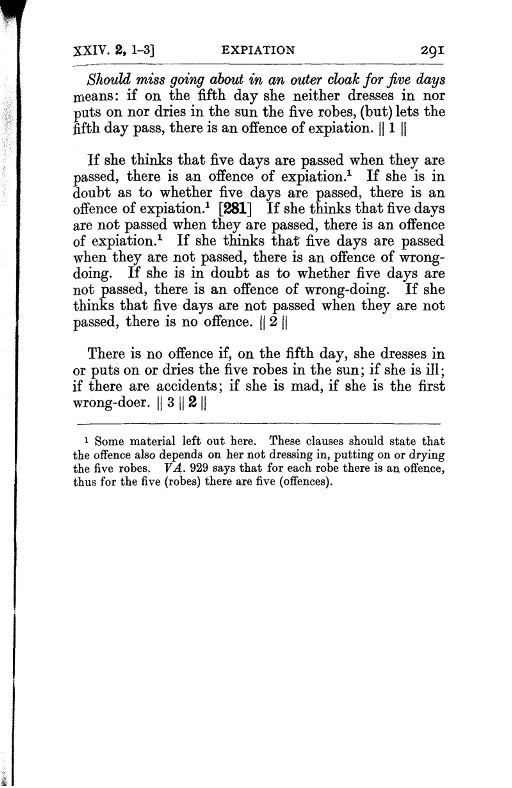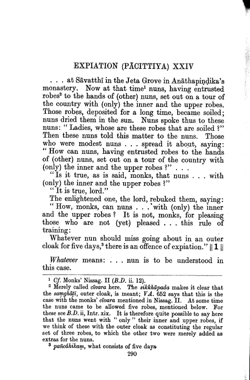 24. If a bhikkhuni fail to wear the upper robe for five succeeding days, it's an offence for atonement.