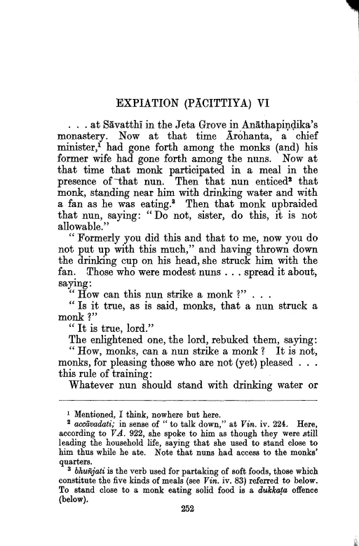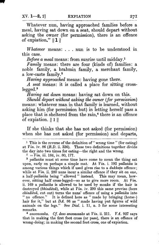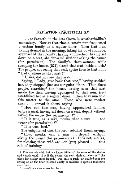 15.If a bhikkhuni approach a family before the mid-day meal, take a seat and leave that house without informing the mistress, it's an offence for atonement