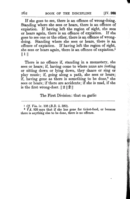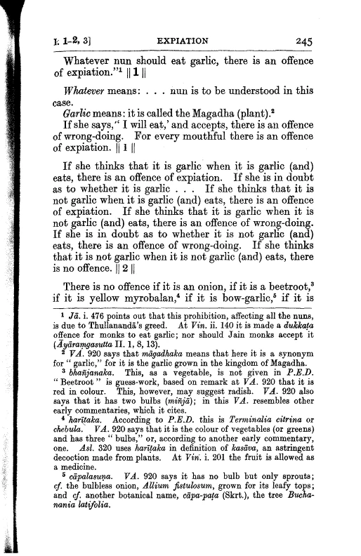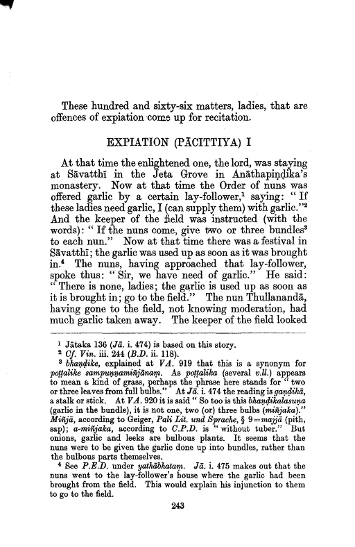 1. If a bhikkhuni eats garlic, it's an offence that merits atonement.