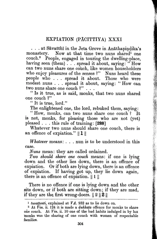 31 Two bhikkhunis sharing one bed, is an offence for atonement.