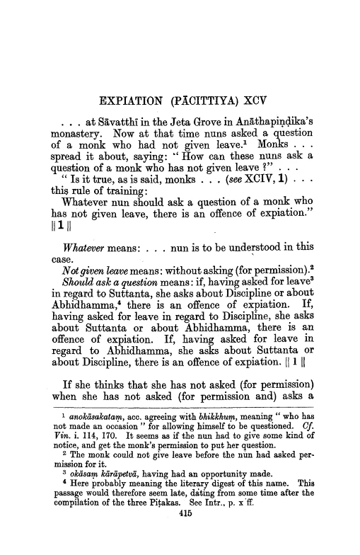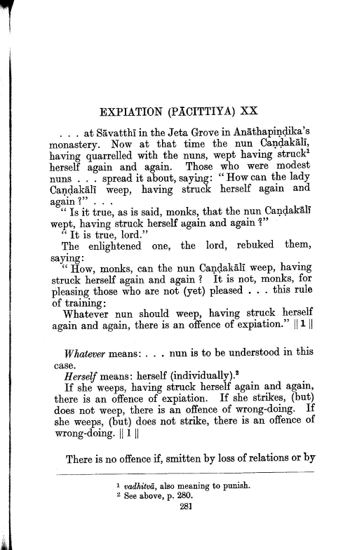 155. If a bhikkhuni arouse doubts about a bhikkhuni, intending to make her unhappy for a moment, when there is no other reason, it's an offence for atonement.
