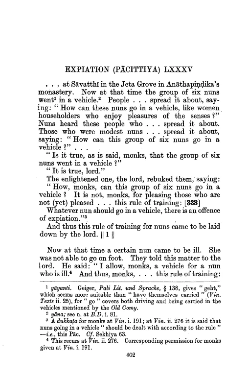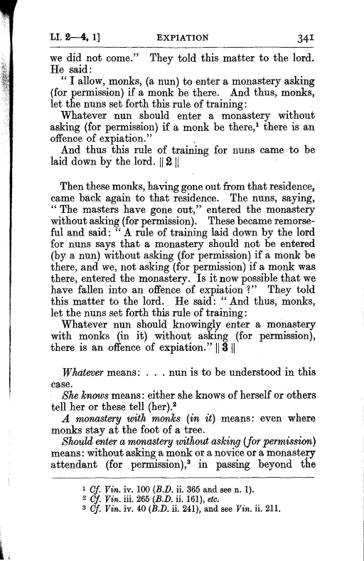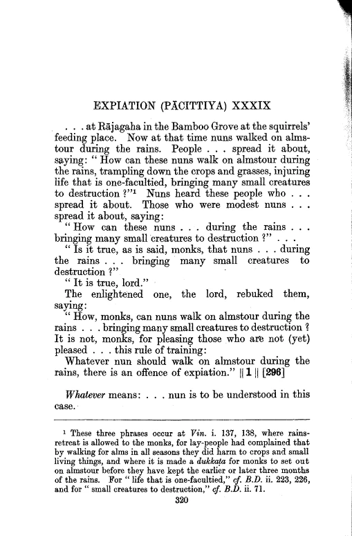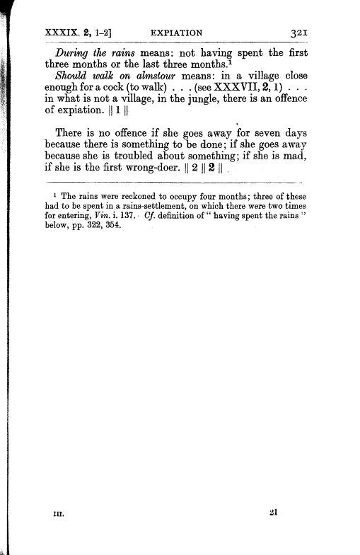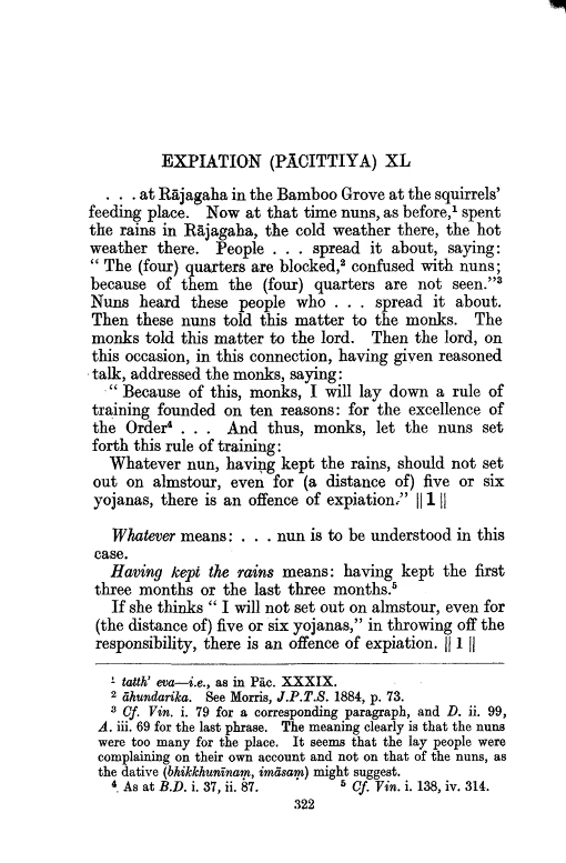40. A bhikkhuni not going on a tour of at least thirty-five to forty-two miles, when the observation of the rains end, is an offence for atonement.