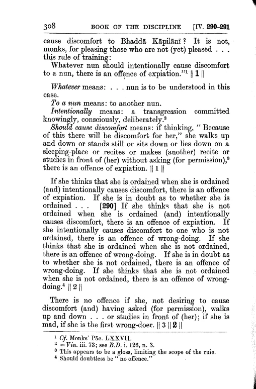 33. If a bhikkhuni intentionally cause discomfort to another bhikkhuni, it's an offence for atonement.