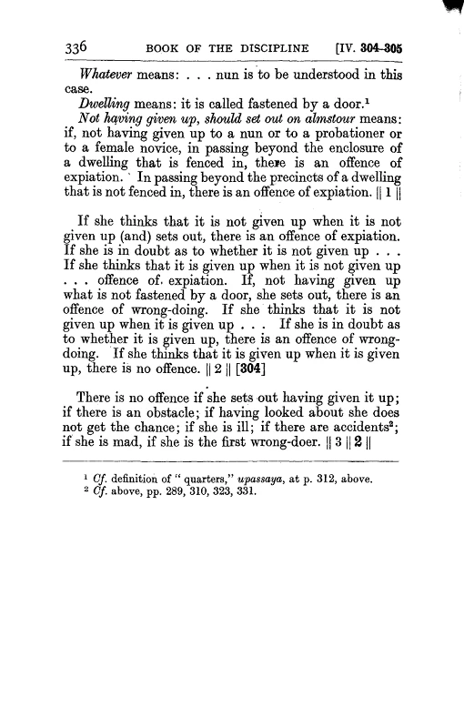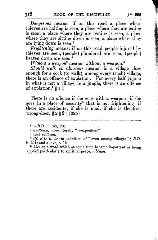 38. A bhikkhuni going on a tour out of the country if considered dangerous, fearful and unprotected, it's an offence for atonement.