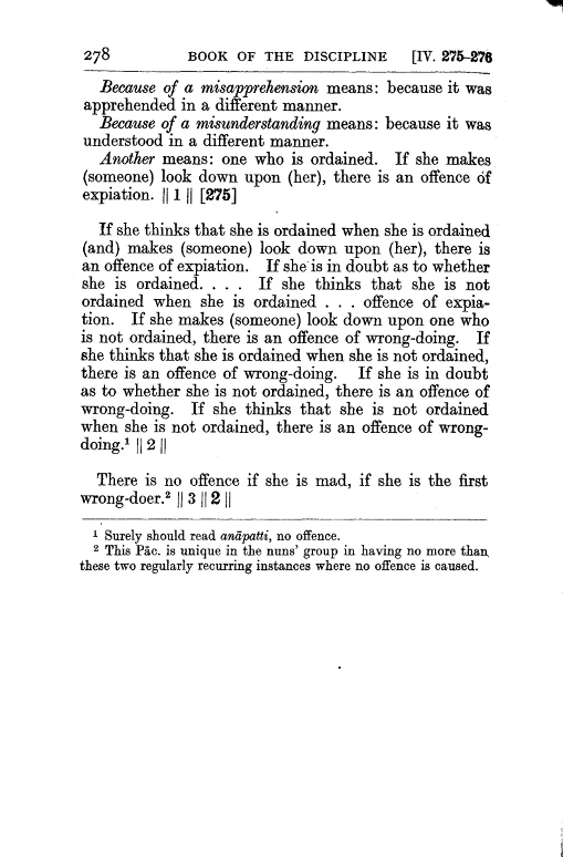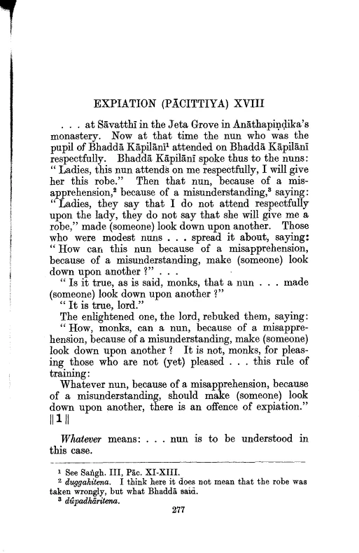 18. If a bhikkhuni belittle another owing to a misunderstanding, it's an offence for atonement.