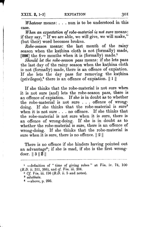 30. If a bhikkhuni keep back from enjoying the rightful privileges of the robe season, it's an offence for atonement.