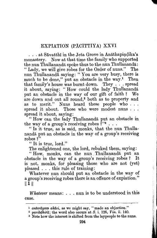 159. Should a bhikkhuni in concord with the Community of bhikkhunis offer a robe to a certain bhikkhuni and later regret saying: `The bhikkhunis offer the gains of the Community according to their whims.' is an offence for atonement.