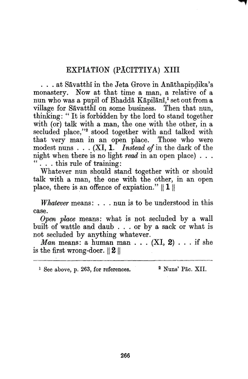 13. If a bhikkhuni without another, stand close to a male and talk to him in open space, it's an offence for atonement.