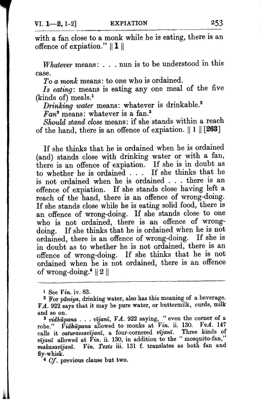 6. If a bhikkhuni offers water or fans a bhikkhu partaking food, it's an offence that merit atonement.