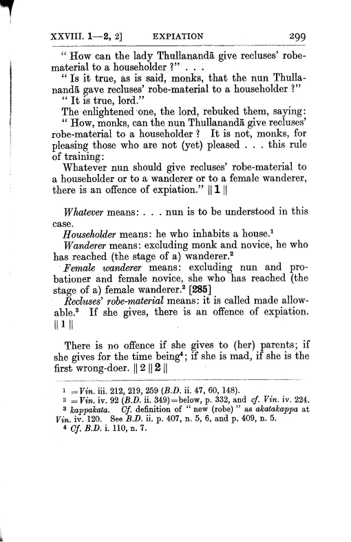 28. If a bhikkhuni offer the robe of a recluse, to a householder, a wandering ascetic, or a female wandering ascetic, it's an offence for atonement.