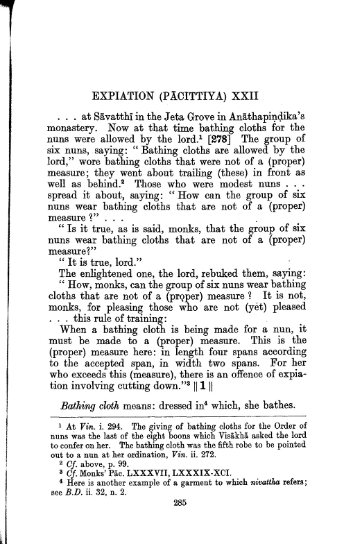 22. The bathing cloth of a bhikkhuni should be in length four spans and breadth two spans, according to the measurements of the Well Gone One. If it exceeds, it's an offence for atonement.