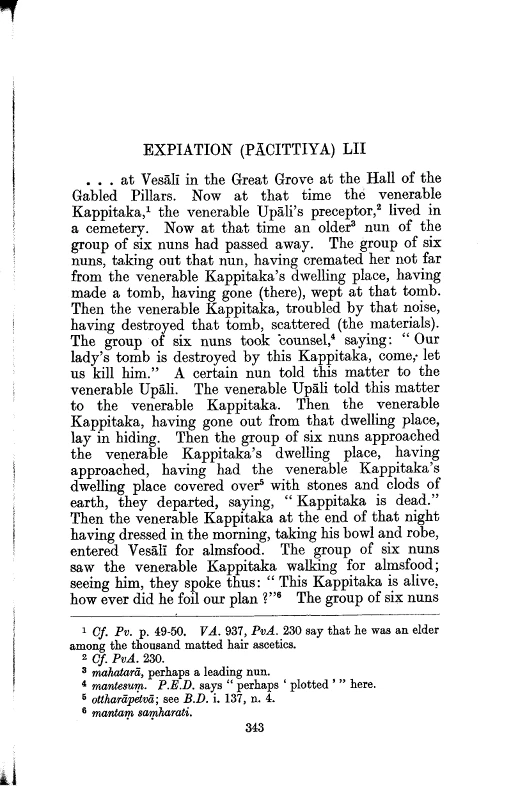 for two or three nights, that favor is not for you. Now go and destroy your self. Should a bhikkhuni knowing the novice so destroyed, speak with her, partake food and live with her, it's an offence for atonement.