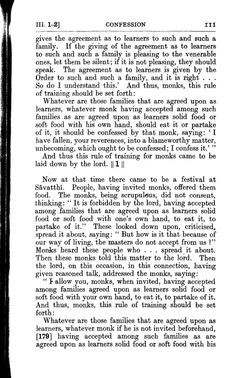 3. There are families designated as in training. Should any bhikkhu, not being ill, uninvited beforehand, chew or consume staple or non-staple food, having received it himself at the residences of families designated as in training, he is to acknowledge it: "Friends, I have committed a blameworthy, unsuitable act that ought to be acknowledged. I acknowledge it."