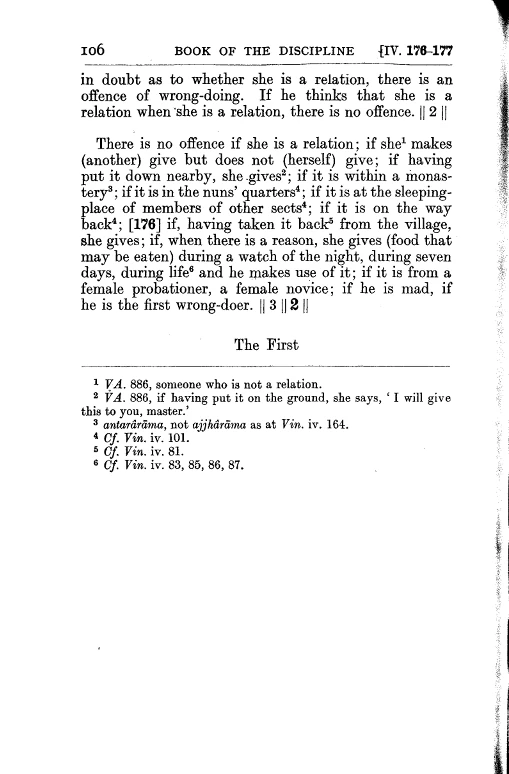 1. Should any bhikkhu chew or consume staple or non-staple food, having received it with his own hand from the hand of an unrelated bhikkhuni in an inhabited area, he is to acknowledge it: "Friends, I have committed a blameworthy, unsuitable act that ought to be acknowledged. I acknowledge it."