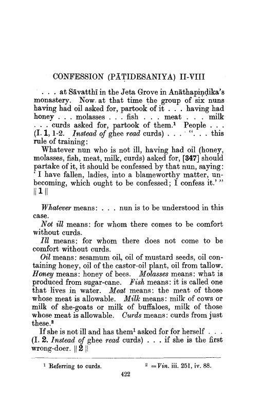 8. A bhikkhuni not sick asking for curd and partaking it, should confess it: `Noble ladies, I have done an offence that is not suitable, and confess it.'