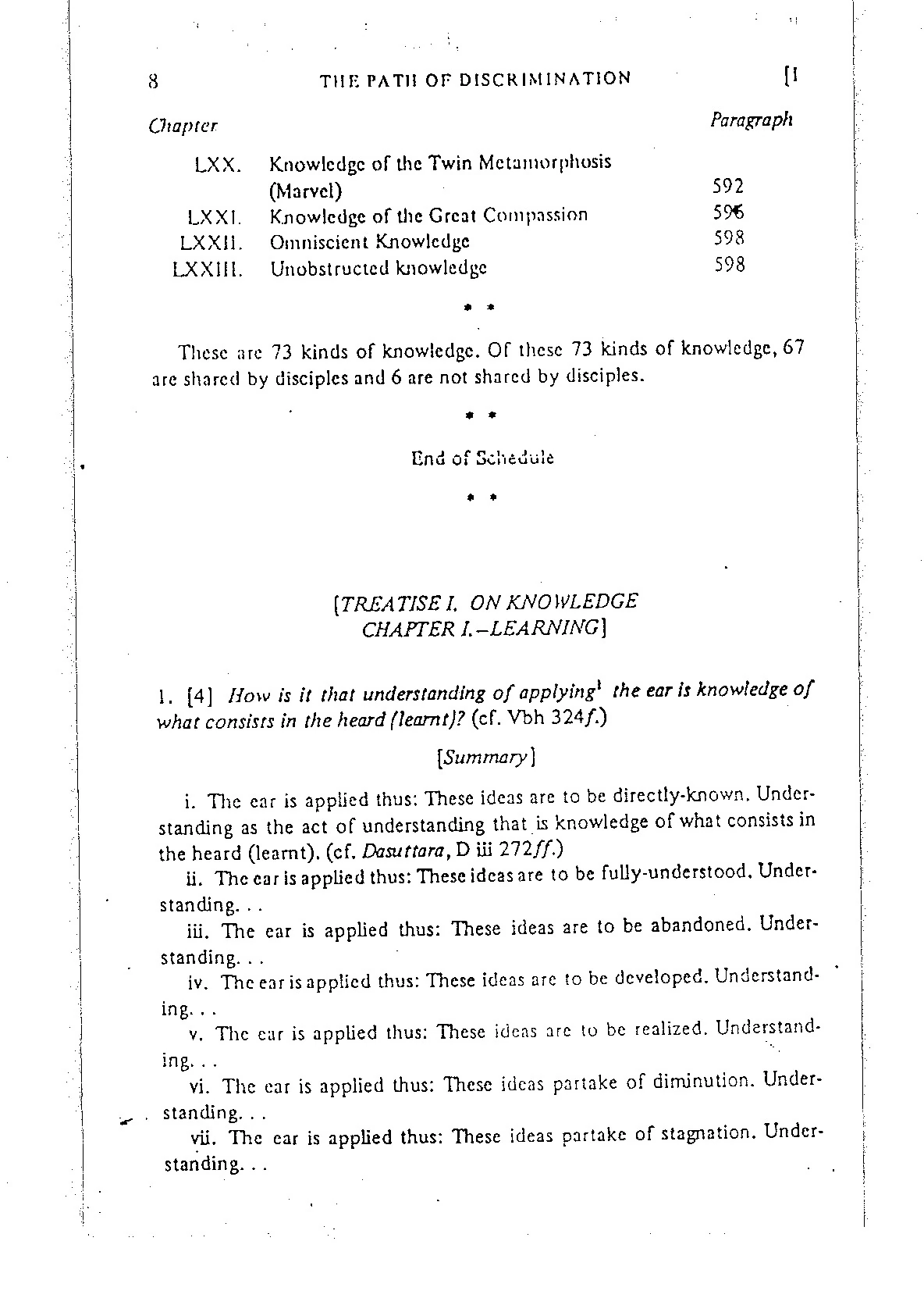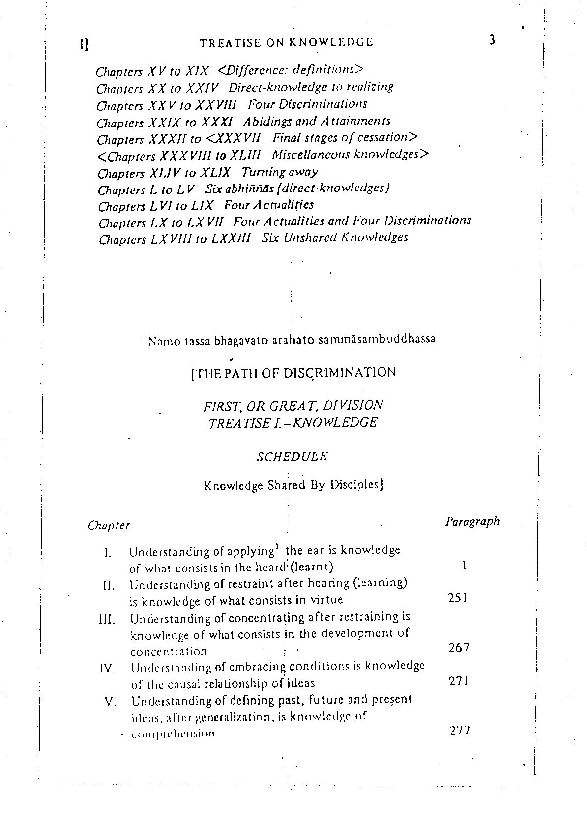 - Mahāvagga ("Great Division") - starts with an enumeration of 73 types of knowledge which are then elaborated upon in detail.